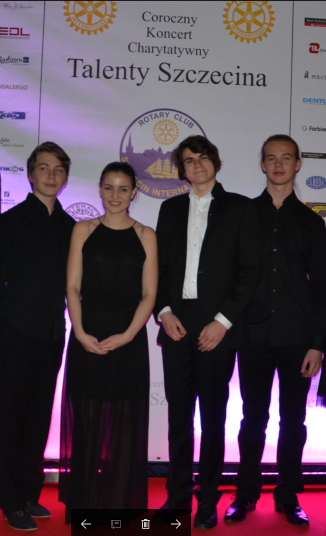 I november 2016 sponset klubben reise til Stettin for fire dyktige musikkelever ved Skeisvang videregående skole. De deltok i en konsertserie som Stettin Rotaryklubb i en årrekke har tatt initativet til. De får satt sammen et symfoniorkester hvor talentfulle musikkstudenter får vist sine ferdigheter foran et begeistret publikum. Overskuddet fra konsertene går til veldedige formål. De siste par årene har musikere fra andre land også fått delta. I år ble det gitt konserter i Stettin, Berlin og Neubrandenburg. De fire elevene fra Haugesund forteller om et særdeles givende og vellykket arrangement.https://www.dropbox.com/s/q6opd6fqui1ubod/VID_20161114_210810share.mp4?dl=0